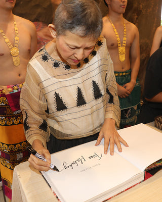 Filipiniana is Forever is a 408-page hardcover volume celebrating over five decades of Patis Tesoro’s artistry and advocacy for Filipino heritage. Weighing nearly 4 kilos and filled with striking photography, essays, and designs, it captures her deep devotion to traditional textiles, embroidery, and fashion.